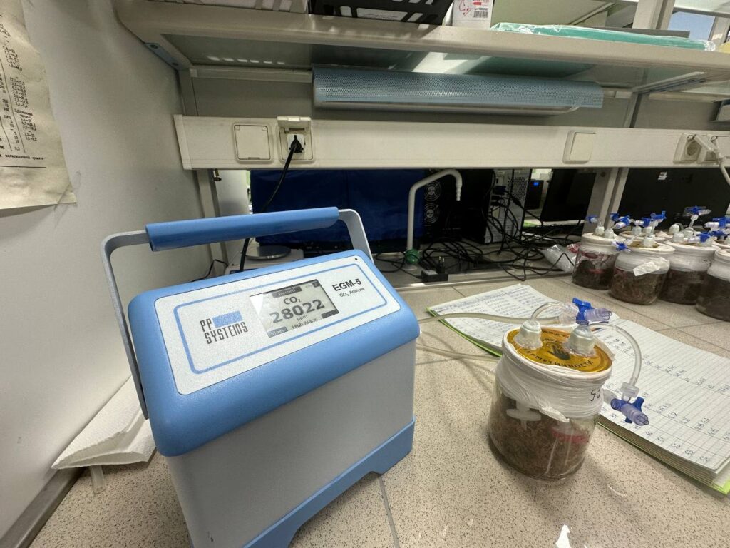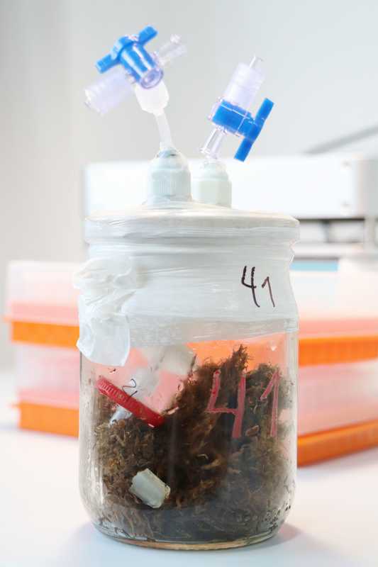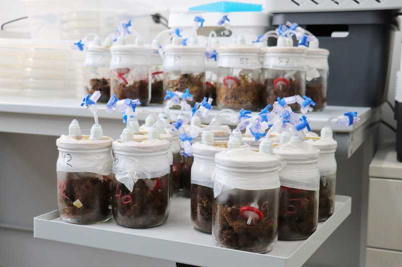 - Подготовлен и начат долгосрочный эксперимент по прямой оценке дыхательной активности грибов в торфе. Для этого 21 сосуд со стерильным торфом был инокулирован чистыми культурами пяти модельных видов из разных таксономических групп.