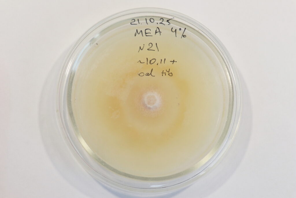 - Существенно расширена и охарактеризована коллекция чистых культур грибов верховых болот, включающая 92 штамма из 49 таксонов. Коллекция охватывает ключевые экологические группы (сапротрофы, микоризообразователи) и служит основным ресурсом для лабораторных экспериментов.