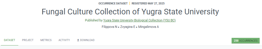 Visit full YSU-C collection database via GBIF dataset (including photographis of cultures and related sequences)