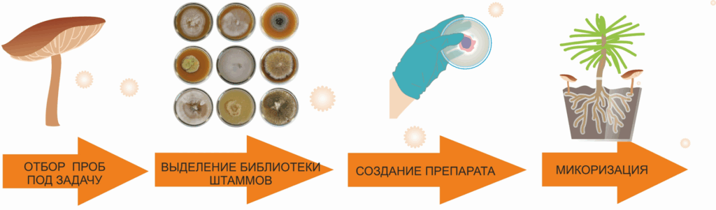 Работа ведется в рамках реализации Соглашения № 2024-514-04 «Разработка микоризных препаратов для увеличения приживаемости древесных пород для биоремедиации и реализации климатических проектов»