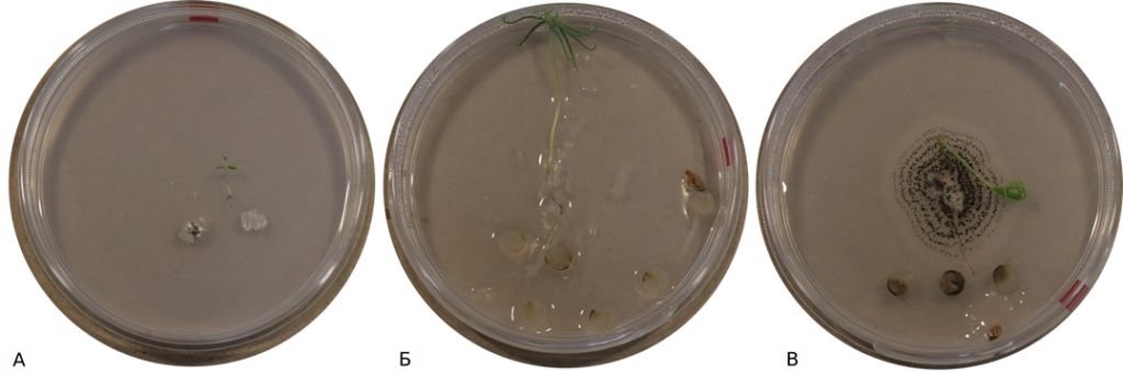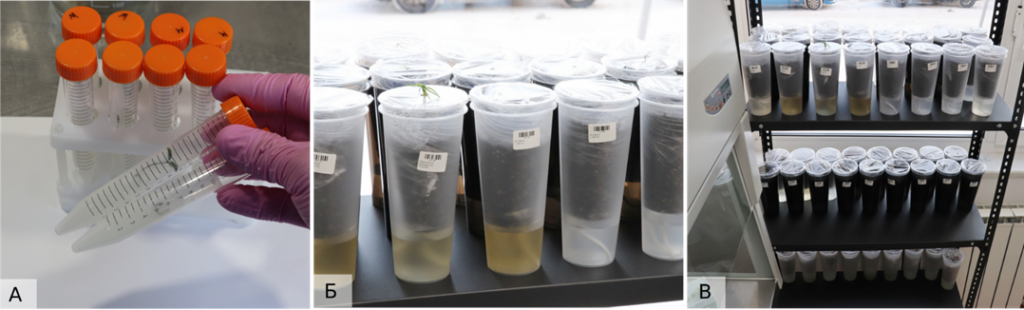 - Developed methods for sterilizing, stratifying, and germinating seeds of Siberian pine, Scots pine, and Siberian larch under sterile conditions.